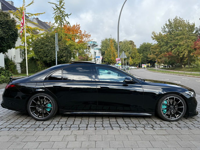 Zum Verkauf steht ein Mercedes-Benz S 400 d 4MATIC mit 330 PS (243 kW) und einer exklusiven Ausstattung auf höchstem Niveau. Das Fahrzeug wurde mit einem kompletten Brabus Bodykit veredelt und steht auf originalen Brabus Monoblock Z21 Forged Platinum Edition Felgen in Schwarz/Glanzfront. Die Bremssättel wurden in Tiffany Blue lackiert, was dem Fahrzeug eine besonders edle und auffällige Optik verleiht.